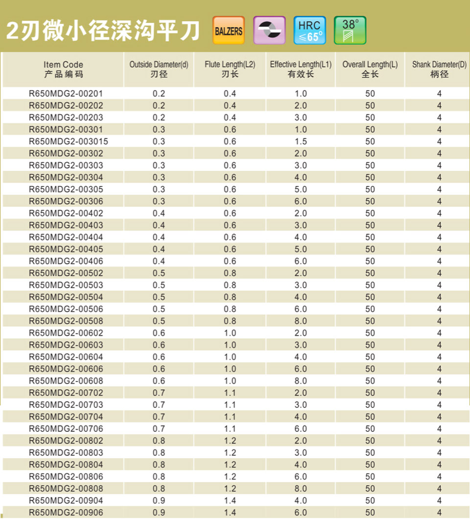 2刃微小徑深溝平刀